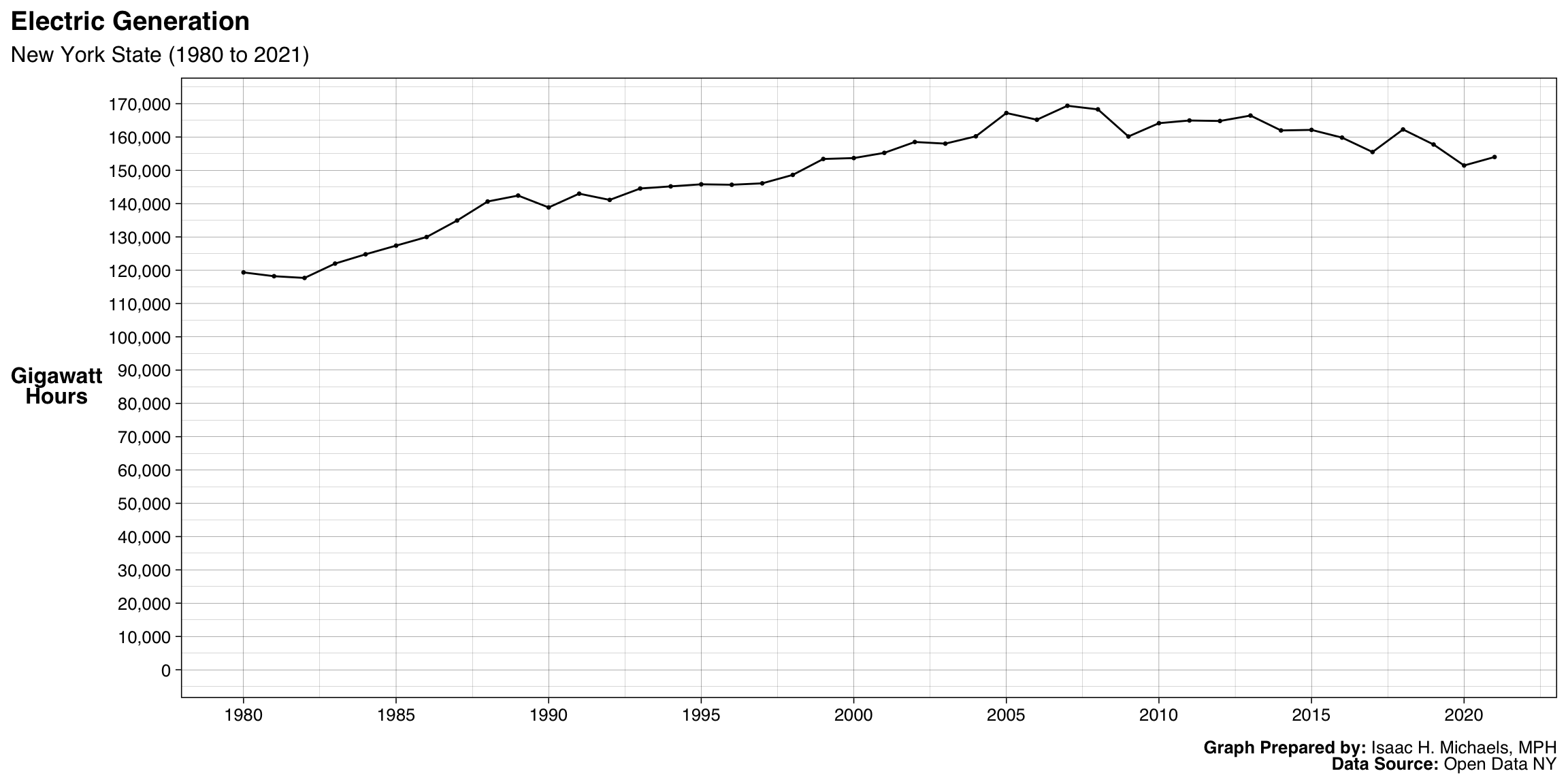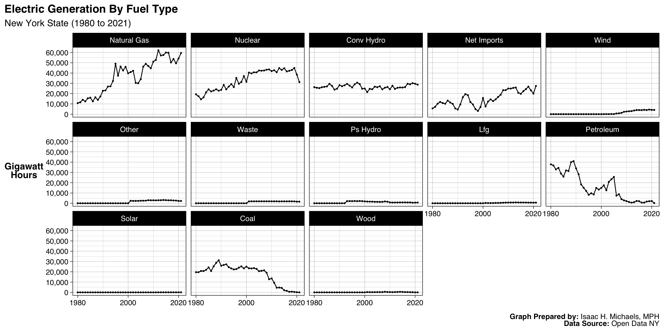 Electric Generation By Fuel Type: New York State (1980 to 2021)