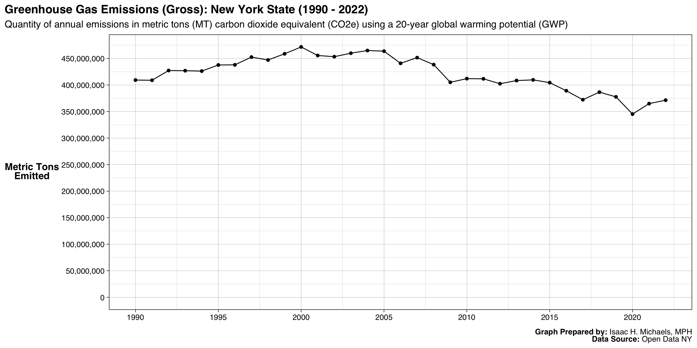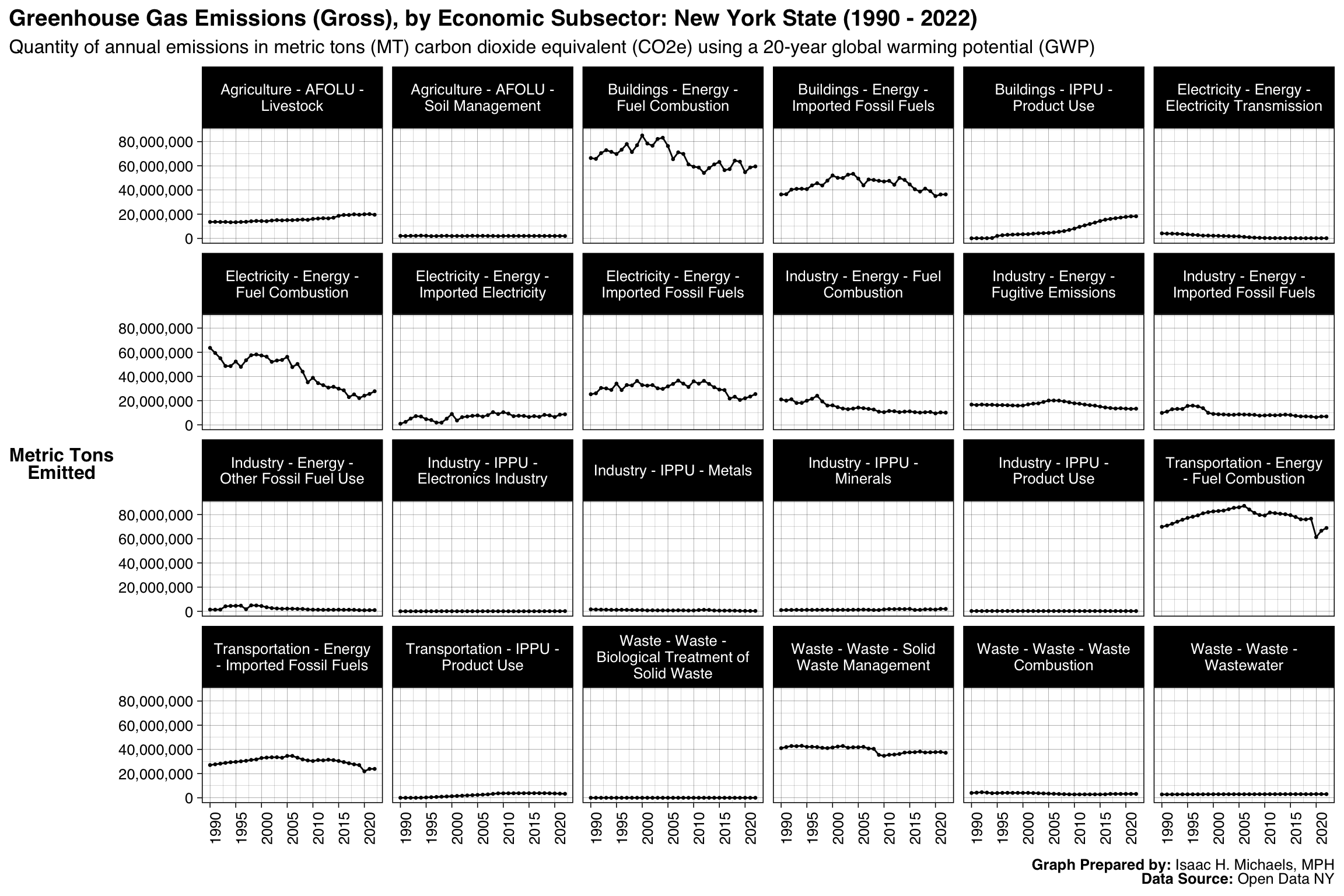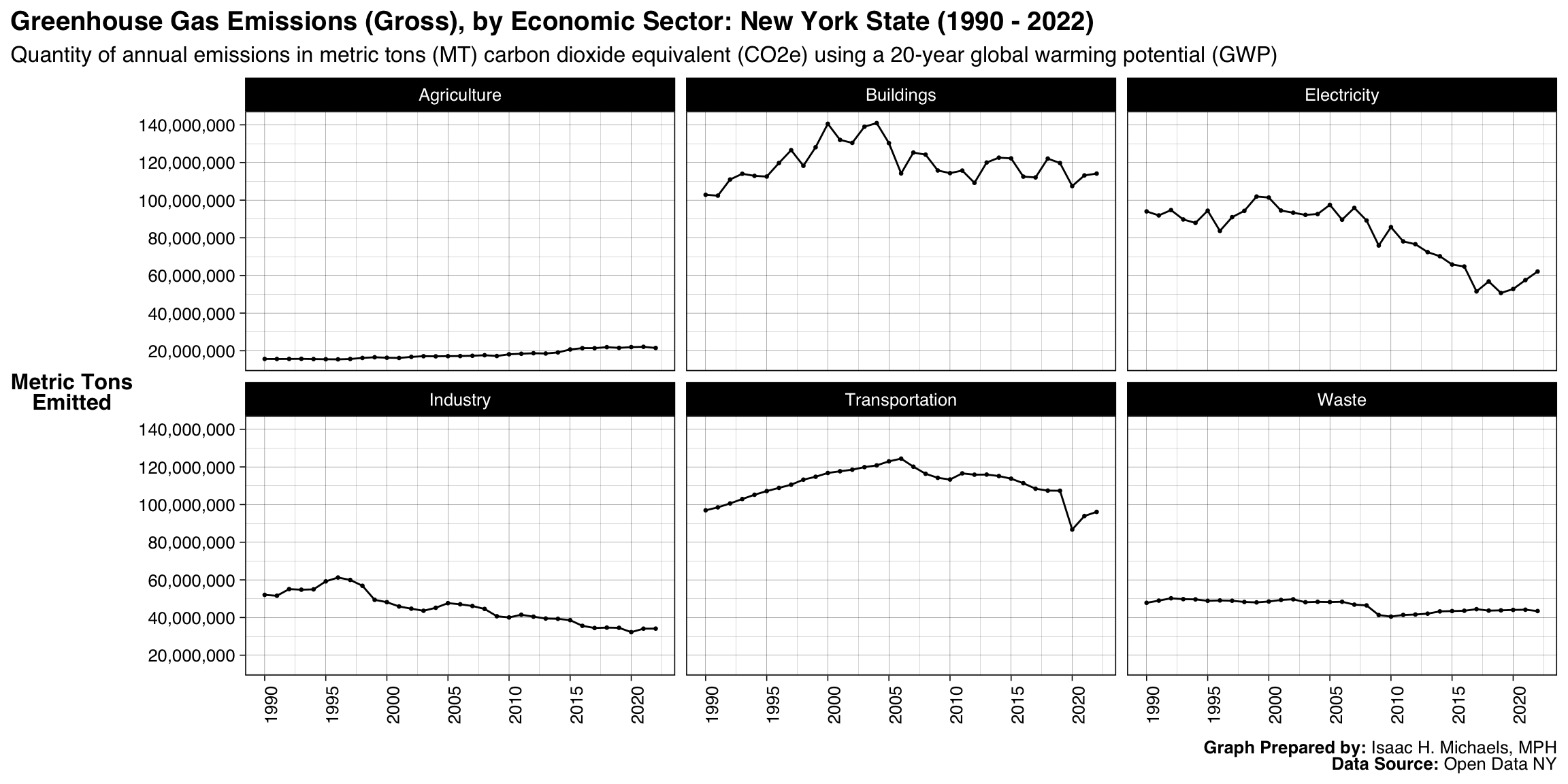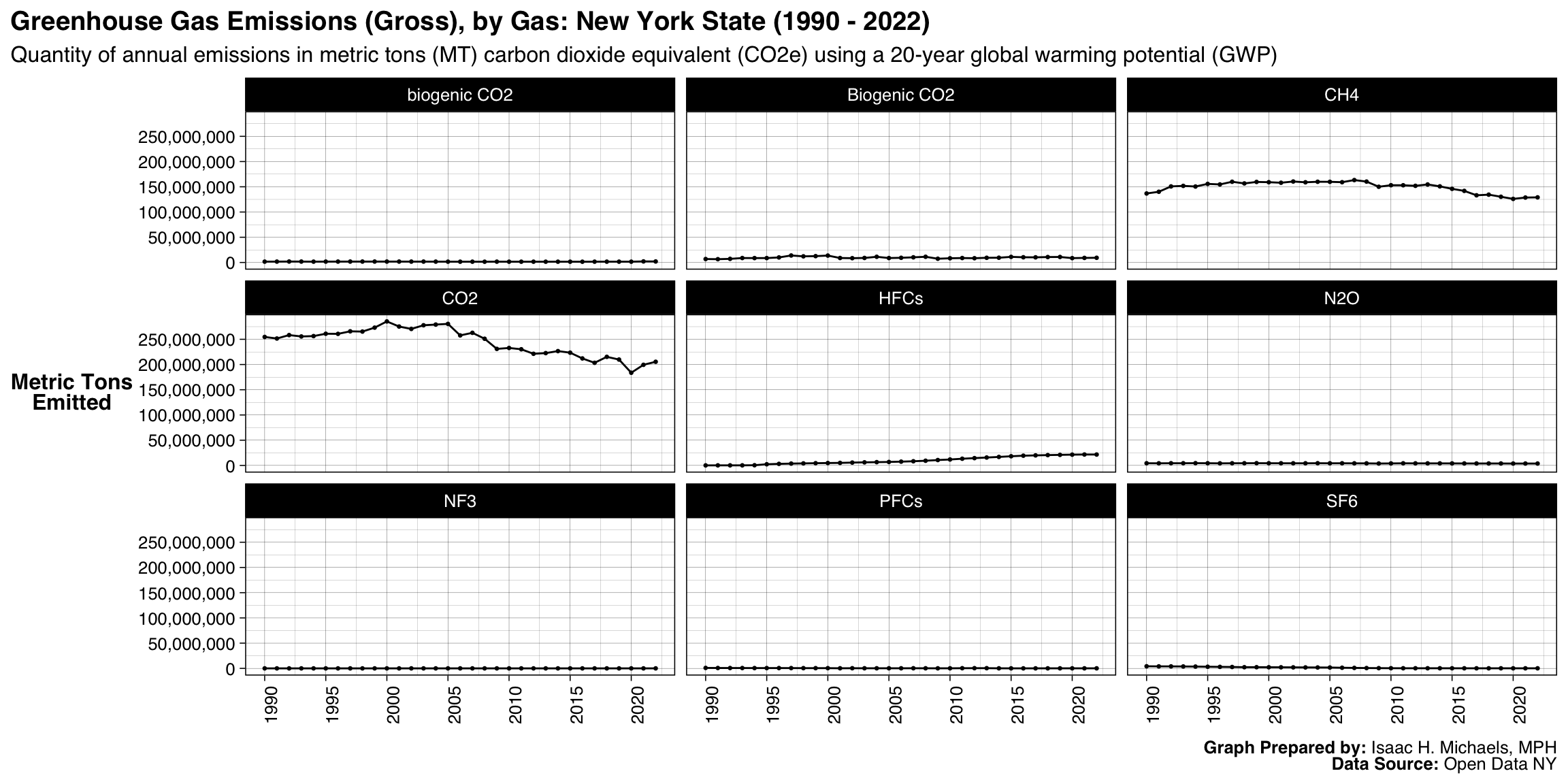 The Department of Environmental Conservation has compiled a dataset on statewide greenhouse gas emissions in New York beginning in 1990. This dataset aims to inform the 2021 New York State Statewide Greenhouse Gas Emissions Report, a key component of the state’s strategy for addressing climate change. The report is intended to meet the requirements of the Climate Leadership and Community Protection Act, track progress in reducing greenhouse gas emissions, and make greenhouse gas information accessible to the public. The dataset provides annual emissions estimates up to the most recent year for which data are available.